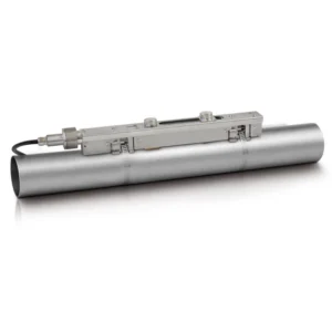 A clamp on ultrasonic flow meter is a non-intrusive device used to measure the flow rate of liquids in a pipe using high-frequency sound without cutting or tapping into it. Two transducers are clamped to the outside of the pipe and alternately transmit and receive ultrasonic signals through the pipe wall and the flowing liquid. The meter accurately calculates the liquid’s velocity by measuring the time difference between the sound waves traveling with and against the flow. The volumetric flow rate is determined by the velocity combined with the pipe’s internal dimensions.